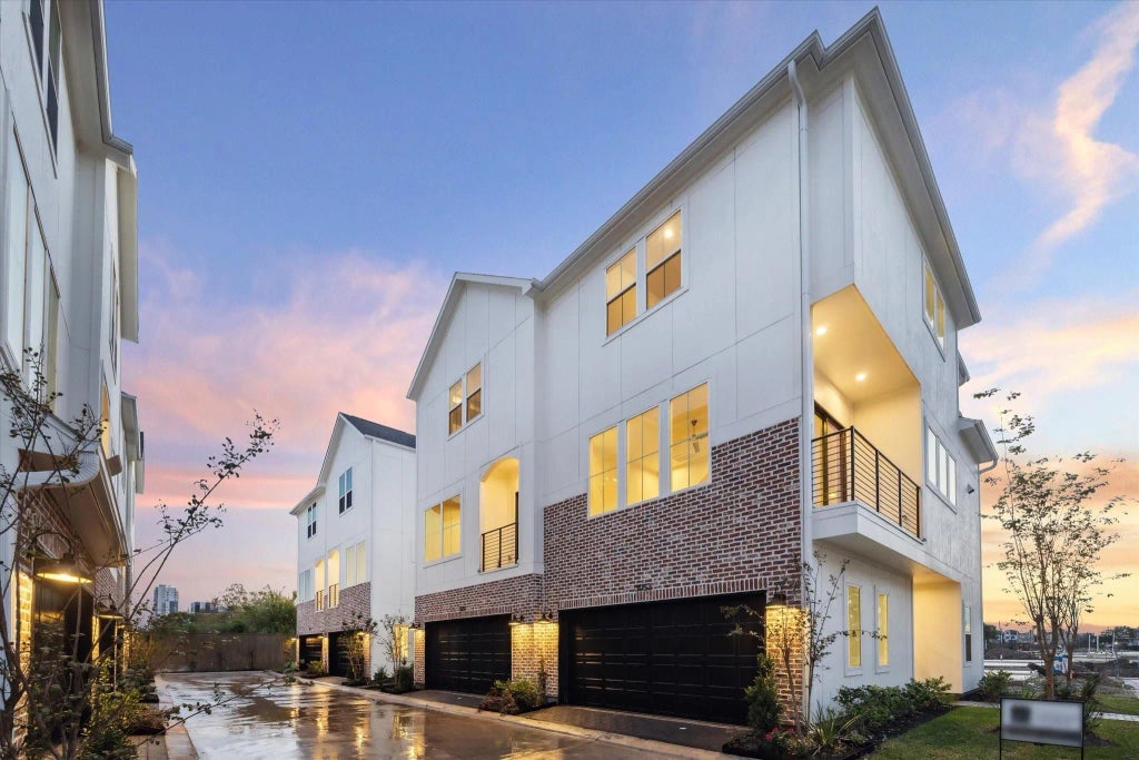 Sleek, stylish, and packed with perks- this showstopper by City Choice Homes is located in the vibrant White Oak Station, a community complete with a pickleball court, lush courtyard & a massive dog park, all overlooking the Downtown skyline! The 3-story stunner offers 3 beds, 3.5 baths, Swiss hardwoods throughout and an oversized balcony perfect for entertaining. The first level welcomes with an en-suite guest room. On the 2nd floor, a dramatic 30' sun drenched Great Room flows into a chefs kitchen with quartz counters, premium shaker cabinets, high-end appliances, and a giant eat-in bar-top. Upstairs, the primary suite is retreat- 10' tray ceilings, spa-style bath with soaking tub, dual vanities, glass enclosed shower, and a massive walk-in closet with built-ins. Another en-suite + utility up. Private yard, luxe finishes, and unbeatable location--steps to Washington Ave & Heights Blvd's top dining, life accommodations & boutiques. White Oak Station redefines walkability in Houston!