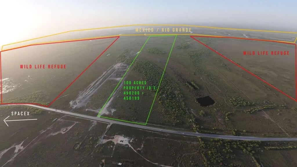 100 Acres in the Starbase Area – Borders Rio Grande, Near SpaceX Launch Facility & Historic Sites Prime 100-acre tract located along TX-4 in the rapidly developing Starbase area of Cameron County. The property borders the Rio Grande River, is surrounded by protected wildlife refuge, and offers a strategic location near the Gulf Coast and SpaceX launch operations. The area is known for frequent aerospace activity, and the property offers unobstructed views of nearby launch events from the SpaceX facility. Situated near the Palmito Ranch Battlefield Historic Site and adjacent to a widely recognized sculpture commemorating the region’s contributions to space exploration. Few privately owned parcels remain available in this section of TX-4, making this a rare opportunity for development, recreation, or long-term investment. Road access is in place. Buyer to verify zoning, utilities, and floodplain status. Survey and GPS coordinates available upon request.