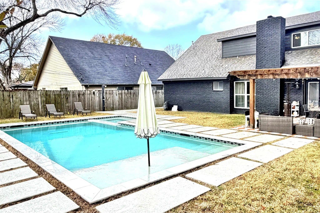 Beautiful 1960s ranch style house updated in 2022 with gorgeous pool with hottub and outdoor pergola area. Kitchen has stainless appliances, Spanish marble counters, mosaic backsplash, and soft-close drawers. Primary bedroom is down, with 3 bedrooms upstairs. Larger upstairs bedroom is currently being used as primary. Low-E windows, spray foam insulation, and Nest thermostats will keep your bills low.