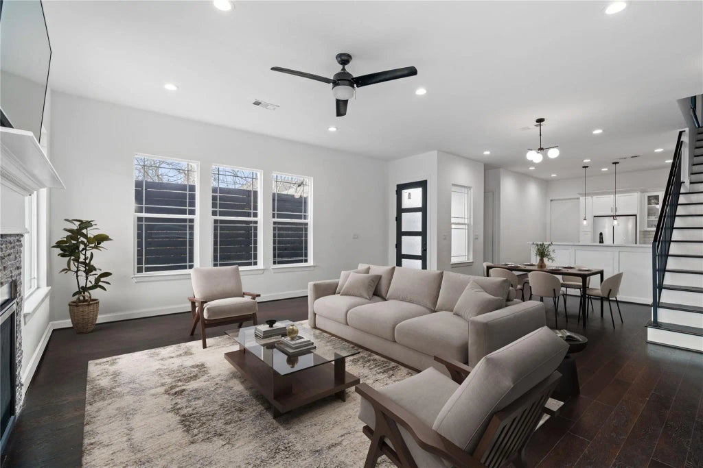 Privately gated 2019 custom home in Independence Heights offering rare 1st floor living with 4 beds/3 full baths/2 half baths & 2,951SF. Open-concept layout connects living, dining & kitchen with abundant natural light, 10ft ceilings & 8 ft doors. Kitchen features quartz countertops, gas range, walk-in pantry, beverage fridge & a statement island with pendant lighting & display shelving. Primary suite includes a covered balcony, spa-inspired bath with dual sinks, freestanding soaking tub, large frameless glass shower & a spacious walk-in closet. Third-floor game room provides a secondary living space with a half bath & covered balcony. Enjoy 3 covered outdoor spaces, including a covered patio off the living room with an outdoor gas fireplace & a fenced, low-maintenance yard. 2 garage plus additional driveway parking behind the private gate. Zero HOA. Property is outside the 100-year and 500-year floodplain. Adjacent lot is not included and may be purchased separately.