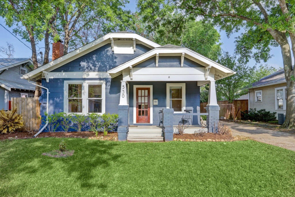 This charming 2/2 bungalow is located on a quiet street in the heart of the Heights with a location that has it all. You will be steps away from the restaurants, bars and shops on White Oak. Direct access to the hike and bike trail is a hundred yards south. A recently remodeled kitchen with newer cabinets, gas range, w/d and granite counters await you. The living room features a fireplace, original built-ins and hardwood floors. Light floods into the house with all the windows. Relax in your private back yard which is fully fenced and can accommodate parking for several cars. Storage isn't a problem as a 10'x12' storage shed sits at the edge of the property. There are two good sized bedrooms both with closets and original hardwood floors. Two full bathrooms, including an en-suite, ensure plenty of privacy. Come see this gem today!