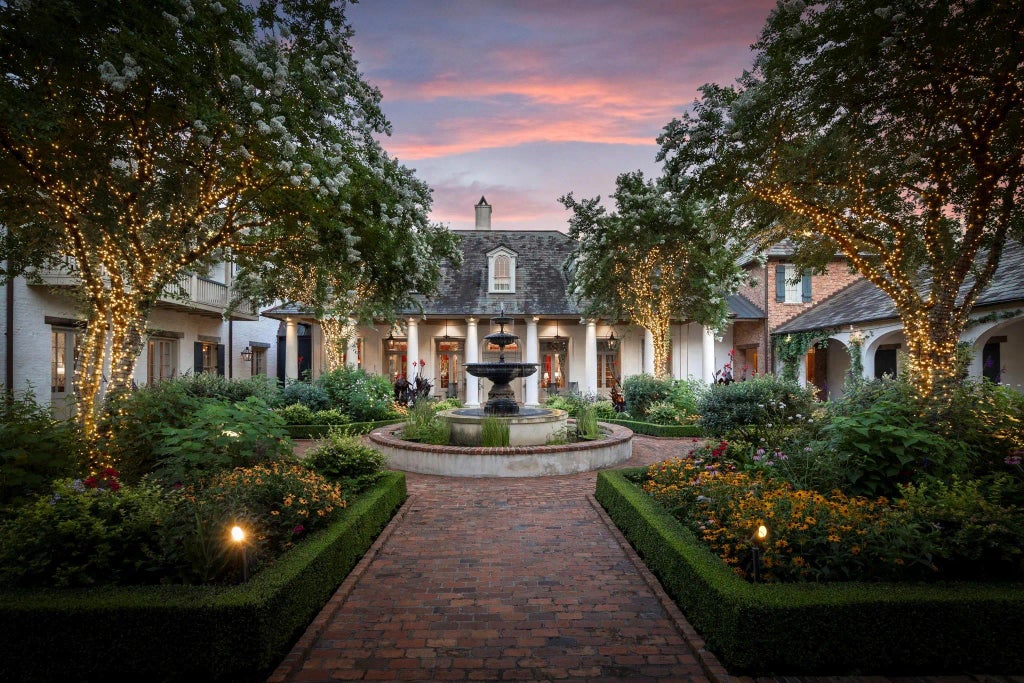 Impeccable French Colonial estate in Carlton Woods, expertly designed by Ken Tate and built by R.B. Ratcliff & Associates. This magnificent home, which ensures the utmost privacy, is situated on over 2 tranquil acres, overlooking the 12th & 18th holes of the Nicklaus golf course. 6 generously sized bedrooms, including an opulent main-level primary suite, 6 full/3 half baths. Distinctive character through reclaimed elements: century-old slate roof, tobacco factory beams, and Louisiana brick. Chef's kitchen featuring La Cornue, Viking refrigerator, Miele dishwashers & custom wine coolers. Advanced geothermal HVAC and 150KW generator. Private gardens complete with resort-style pool, fully outfitted pool house, gardens designed by Helen Grivich, expansive patios, playhouse, and refined cigar room. Additional features include spacious walk-in attics for abundant storage and timeless, flawless finishes throughout. Experience unmatched luxury, craftsmanship, and seclusion.