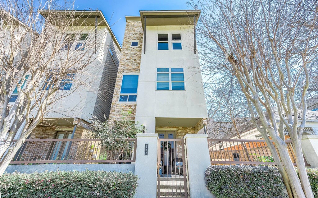 NEW ROOF! This stunning freestanding 3-story home sits on a corner lot with a private front entrance, rooftop deck, and secure gated community access. A welcoming foyer leads to a first-floor bedroom with a private en-suite. The bright, open living area is filled with natural light from large windows. The expansive kitchen features marble countertops, a huge island with ample storage, stainless steel appliances, a wine cooler, and a custom-built dry bar—perfect for entertaining. Updated half bath on the second floor. NO CARPET! NEW FLOORING on the third floor! The spacious primary suite offers a relaxing retreat with a soaking tub, separate shower, and generous closet space. The fourth-floor deck provides a private sanctuary with water/gas connections and stunning views. Minutes from I-10, Washington Ave, Buffalo Bayou Park, HEB, and top shopping & dining. The subdivision backs up to White Oak Bayou Trail with DIRECT ACCESS. Never flooded!