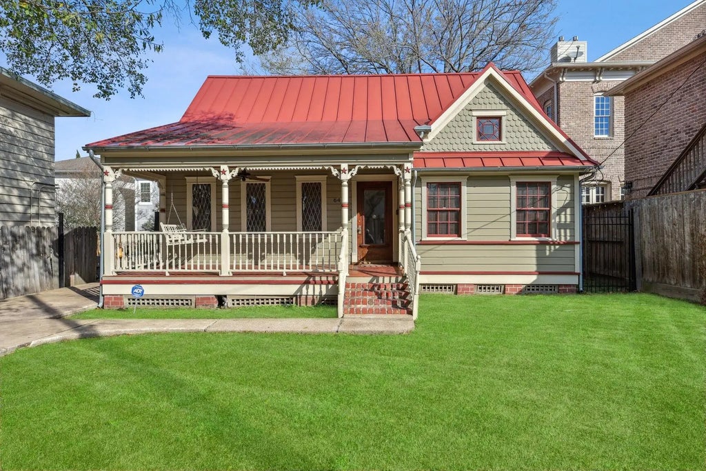 Unlike the numerous rectangular Craftsman style bungalows in the area, this attractive cross gabled 20th century Folk Victorian house is situated in a charming and much desired neighborhood on an uncongested street and within a short distance of public schools. This 1636 SF three bedroom, two bath house possess an inviting balance between openness and privacy not typically seen in a ninety-year-old Heights house. With attention to historic detail, interior and exterior renovations timelessly reinforce and honor the house’s architectural style and unique asymmetric floor plan. More importantly, the original scale and proportion of the house serves a 21st century lifestyle.