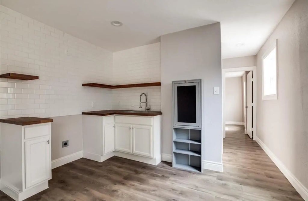 Great Location!-Garage Apartment-Fully renovated with neutral colors, laminate flooring, butcher block counters and open shelving. Features a space-saving folding wall table for dining or work. Fridge, stove and washer/dryer are included. The bathroom ahs subway title, new vanity, toilet and tub with shower. Landlord covers electricity, water, sewer, trash and yard maintenance. Conveniently located near Metro Rail (0.04 miles), Gus Wortham Golf Course and various amenities including groceries, pharmacy, gas, coffee shop, gym and more-all within a mile. Quick access to downtown, the Medical, Center, and U of H.
