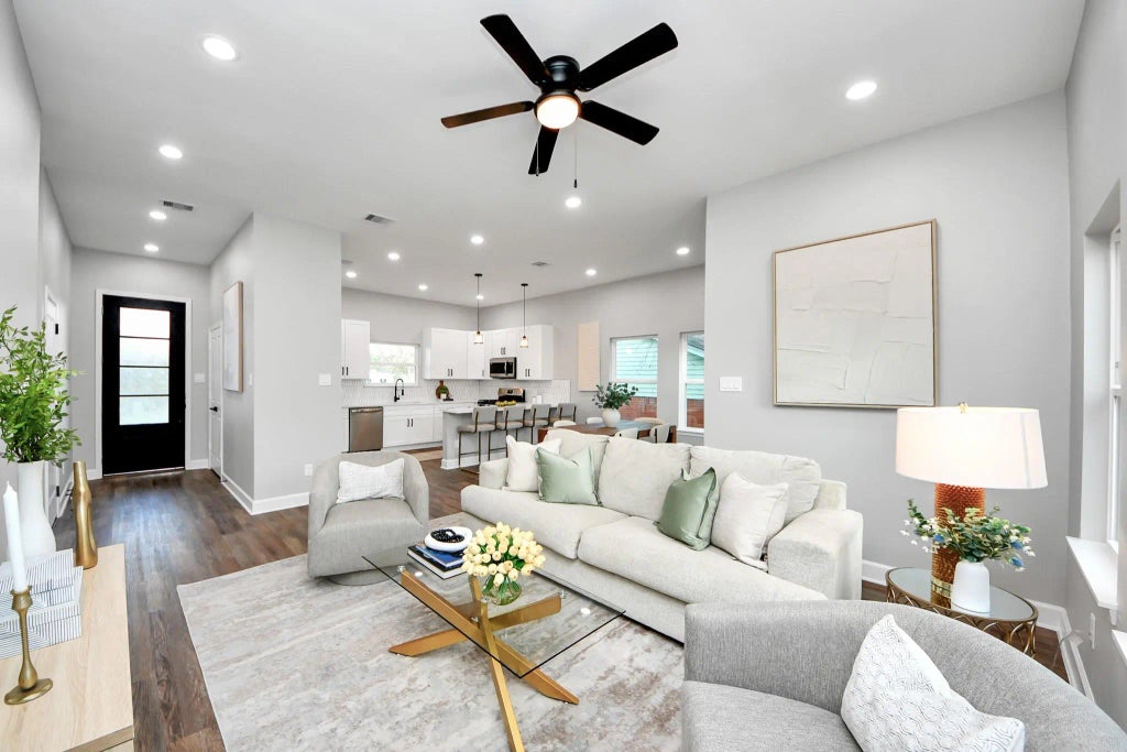 Welcome to this stunning new construction home, thoughtfully designed with modern finishes and an inviting layout. Featuring 3 bedrooms and 2 bathrooms, this one-story residence sits on a generous 6,300 sq. ft. lot and offers both comfort and style.From the moment you arrive, you’ll love the charming covered front porch, perfect for relaxing or welcoming guests. Inside, the open-concept design boasts luxury vinyl plank flooring throughout (no carpet), high ceilings, and abundant natural light. The spacious living and dining areas flow seamlessly into the modern kitchen, creating the ideal setting for gatherings and everyday living.This brand-new home combines convenience, quality, and modern style an opportunity you won’t want to miss. Schedule your showing today!