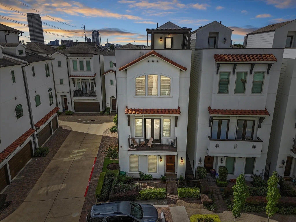 Experience the best of inner-loop living in this stunning former model home. As an end unit in the gated Vista De Sevilla community, it's filled with expansive windows, natural light and convenient access to guest parking and entering and exiting the gated neighborhood. The open floor plan includes a gourmet kitchen with quartz counters and a private balcony overlooking a park. A highlight is the rooftop terrace with a pergola and spectacular downtown skyline views. The spacious master suite boasts a custom walk-in closet. Located in Rice Military, you're a short walk to Houston's finest eateries and close to Downtown and Memorial Park. A true gem!