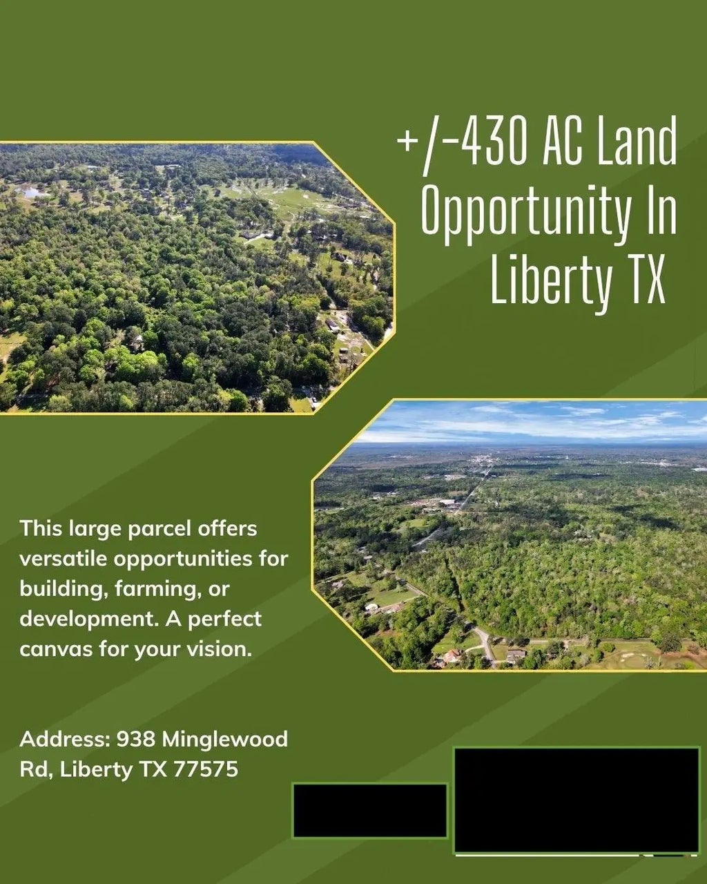 Located in rapidly growing Liberty county in southeast Texas. Discover an opportunity nestled adjacent to the Liberty City Golf Course, where 420+ acres of prime land await your vision. Located within city limits and situated outside the Special Flood Hazard Area, per Fema. Strategically positioned near TX-146 and TX-90, the property benefits from high visibility. A rail line runs parallel to TX-90, providing convenient access to freight transport, while the Liberty Regional Airport and the rail yard in Dayton—just a short drive away—further enhance the site’s logistical advantages. This expansive parcel offers the canvas for a variety of developments.