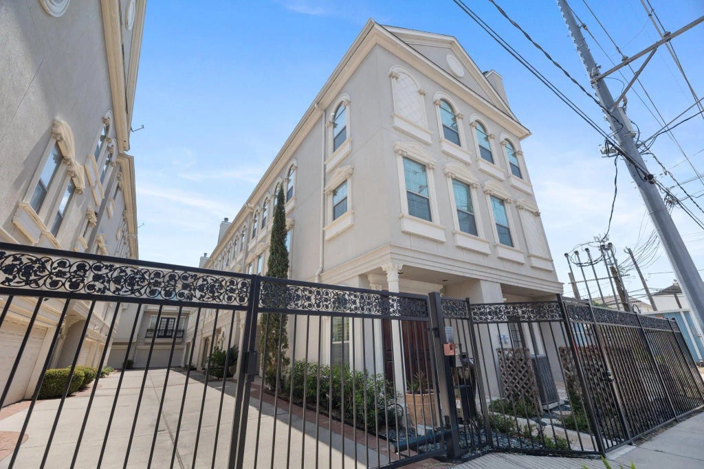 This extraordinary residence exudes timeless French Chateau charm amidst modern architecture. Enter through grand double doors to a welcoming foyer with a built-in bench and ample storage. The first floor offers a spacious bedroom with patio access and an en-suite bath featuring a Murphy Bed. Ascend to the second-floor oasis, where an open-concept common area artfully separates the kitchen, dining room, and living room. Adorned with captivating design elements like crown molding, arches, and Venetian plaster walls, the interior is a masterpiece. The third floor presents a palatial primary suite with a luxurious en-suite bath, granite vanities, and walk-in closets. Situated near Eleanor Tinsley and Buffalo Bayou Park, this residence is perfectly located near renowned restaurants and boutiques in the vibrant Washington Corridor. There is ample street parking in front of the home and the surrounding area, perfect for entertaining.