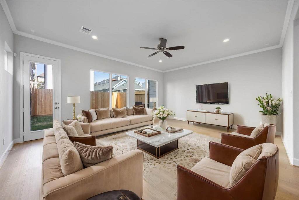 Welcome to 1110 Dart St, a newly minted sanctuary skillfully constructed by Sandcastle Homes. The Chesapeake floorplan impresses on entry with its elegant open-concept layout, connecting a spacious kitchen with quartz countertops, custom cabinets, and top-tier stainless steel appliances. Perfect for any culinary enthusiast, it opens into a generous dining and living area designed for comfort and style. Upstairs explore the luxurious Primary Suite, a spa-like bath offering a serene escape. This floor also hosts a versatile game room, two additional bedrooms, and a study. Amenities include a private driveway, two-car garage, and a fenced backyard, situated in vibrant Sawyer Heights. With only six exclusive homes in this desirable location, now's the time to select one of the remaining available bespoke floor plans. Situated on a welcoming street near downtown Houston and the Arts District, this opportunity to create your ideal living space in a prime location shouldn't be missed.