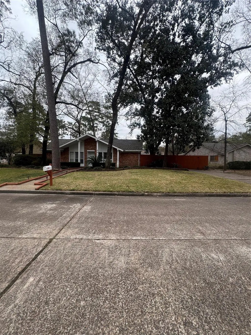 Charming single-story brick home situated on a spacious lot with mature trees and inviting curb appeal. This well-maintained property features a classic brick exterior with white trim, a gabled roofline, and a large front yard with established landscaping and stone-edged garden beds. The gently sloping lawn and abundant shade create a peaceful outdoor setting, while a wood privacy fence offers added seclusion. Located in an established neighborhood, this home provides a timeless exterior and excellent potential for customiz
